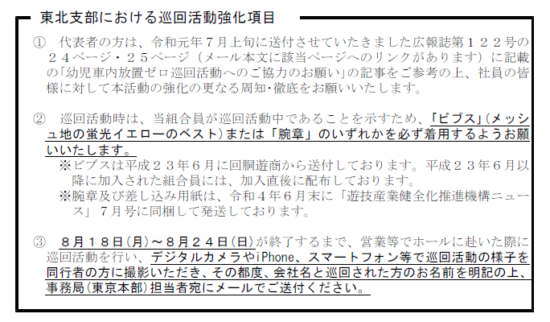 東北支部における「幼児車内放置ゼロ」巡回活動の特別強化週間について