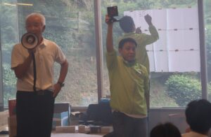 下草刈り終了後は、大阪府高槻市の高槻森林観光センターに移動して近畿支部の活性化及び組合員等の親睦を図るための懇親会を開催し、余興として実施したビンゴ大会は大変盛り上がりました。