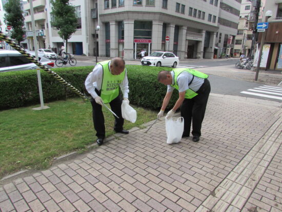 令和7年度は、9月18日(木)、支部会当日の12時から、支部会会場であるANAクラウンプラザホテル広島周辺の清掃活動を行いました。