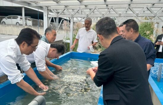 令和7年度は、6年ぶりに参加を見合わせていた宜野湾市内にある保育園の園児たちを招待して、九州・沖縄支部の役員・総務委員会委員及び沖縄県所在の組合員に加え、大饗 裕記理事長と高谷 厚之筆頭副理事長、そして来賓として沖縄パチンコ・スロット協同組合より新垣 善彦理事長、島田 孝治専務理事、新垣 純一郎青年部会長、大城 照朝青年部副会長、九州遊技機商業協同組合の國分 寿人理事長にも参加いただき、総勢85名で、11月21日(金)、沖縄県宜野湾市の宜野湾マリン支援センター(以下、センターという)に おいて、コーラル沖縄の協力のもと、今回で18回目となるサンゴの保全活動を実施いたしました。